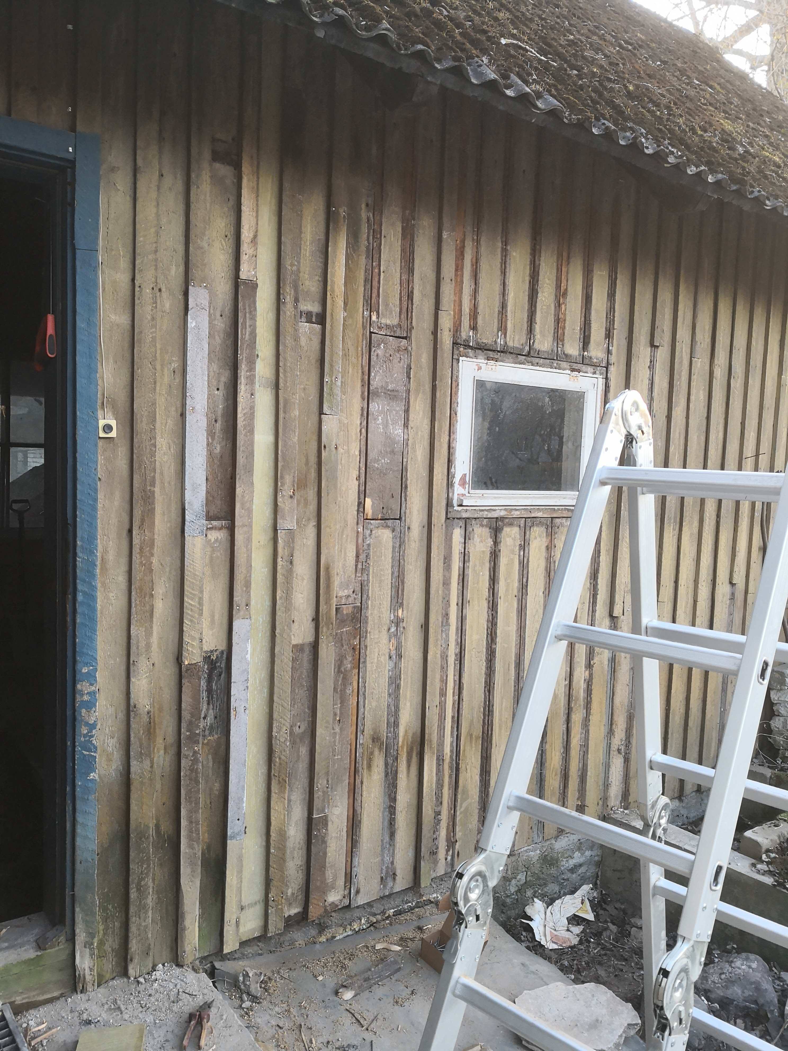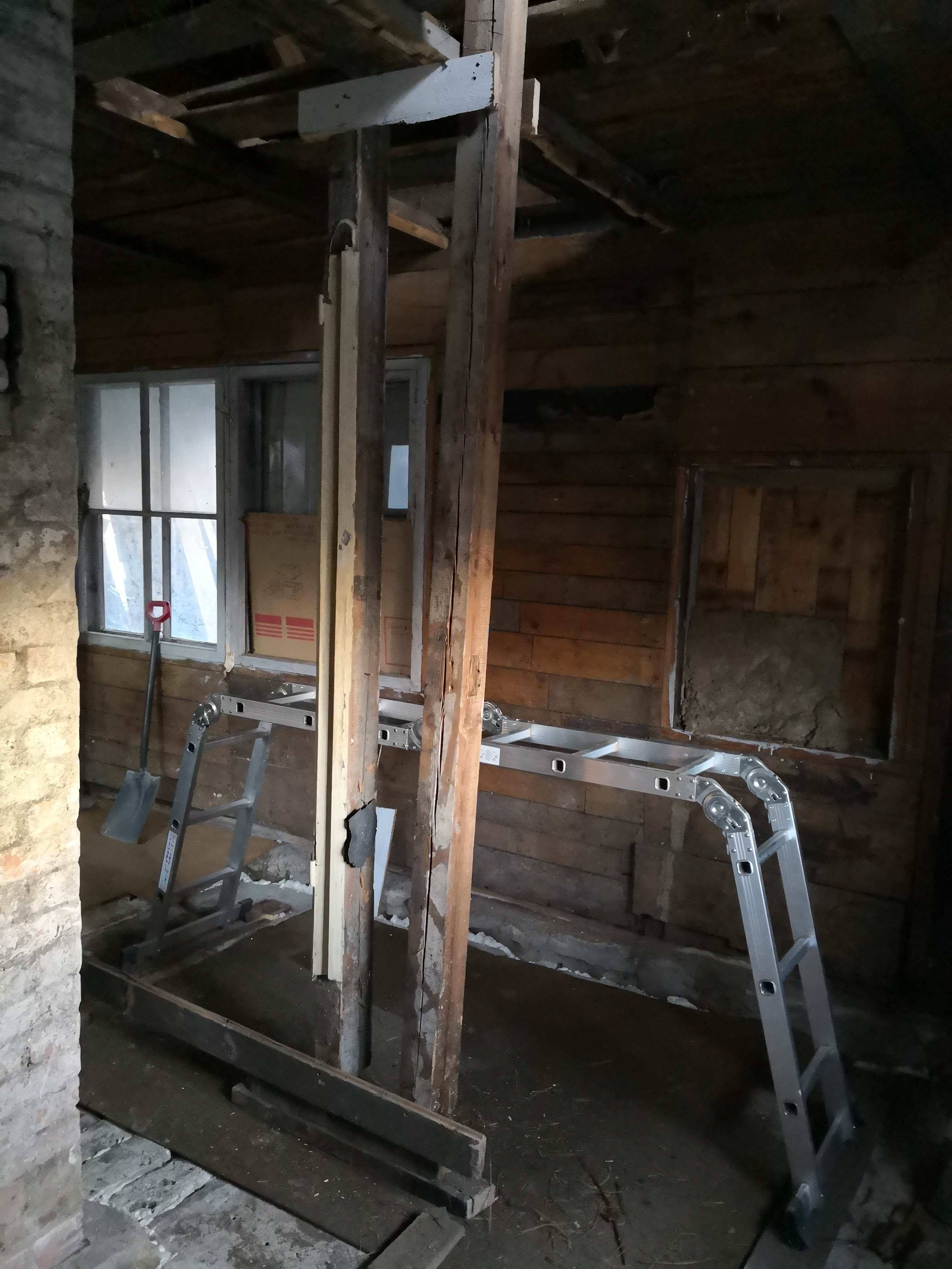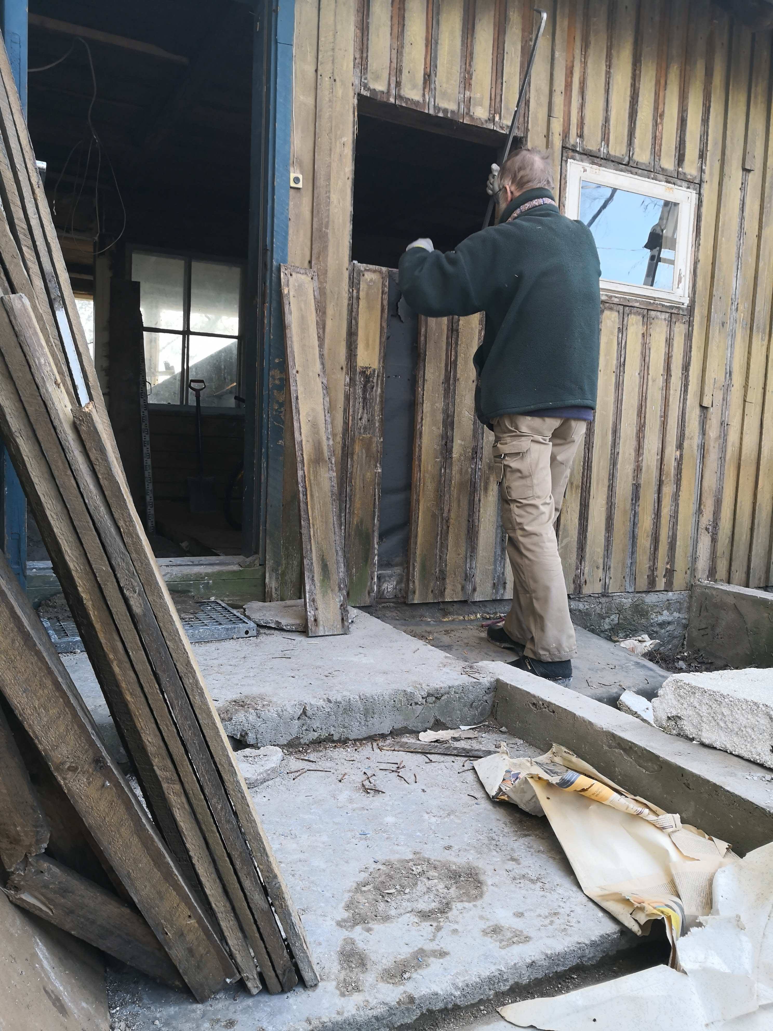 Because of the sunny weather we decided to take out the windows next to the front door. Getting the wood off (in a way it can be reused) took my dad all morning.