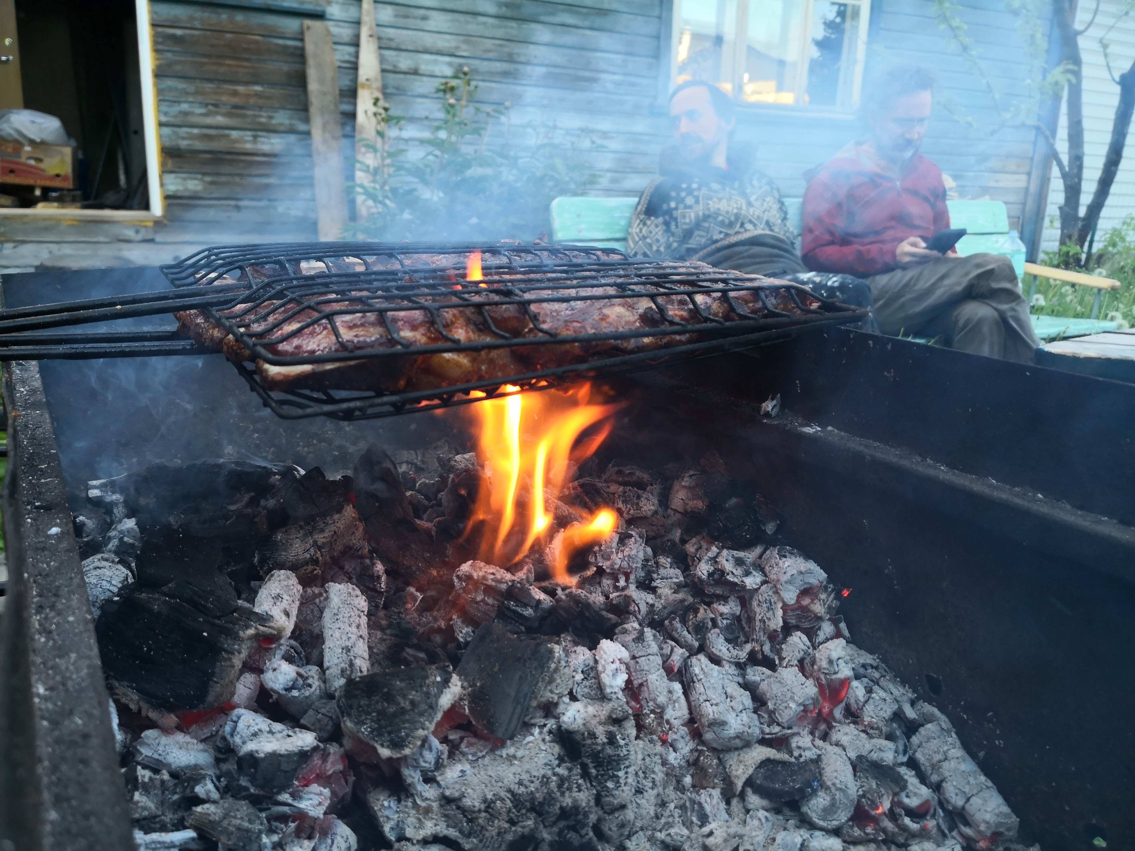 Mo and me cleaned up the attic above the bathroom area and I installed the boiler for the warm water system. Around 19:00 we started the fire for the BBQ and had a nice evening together.