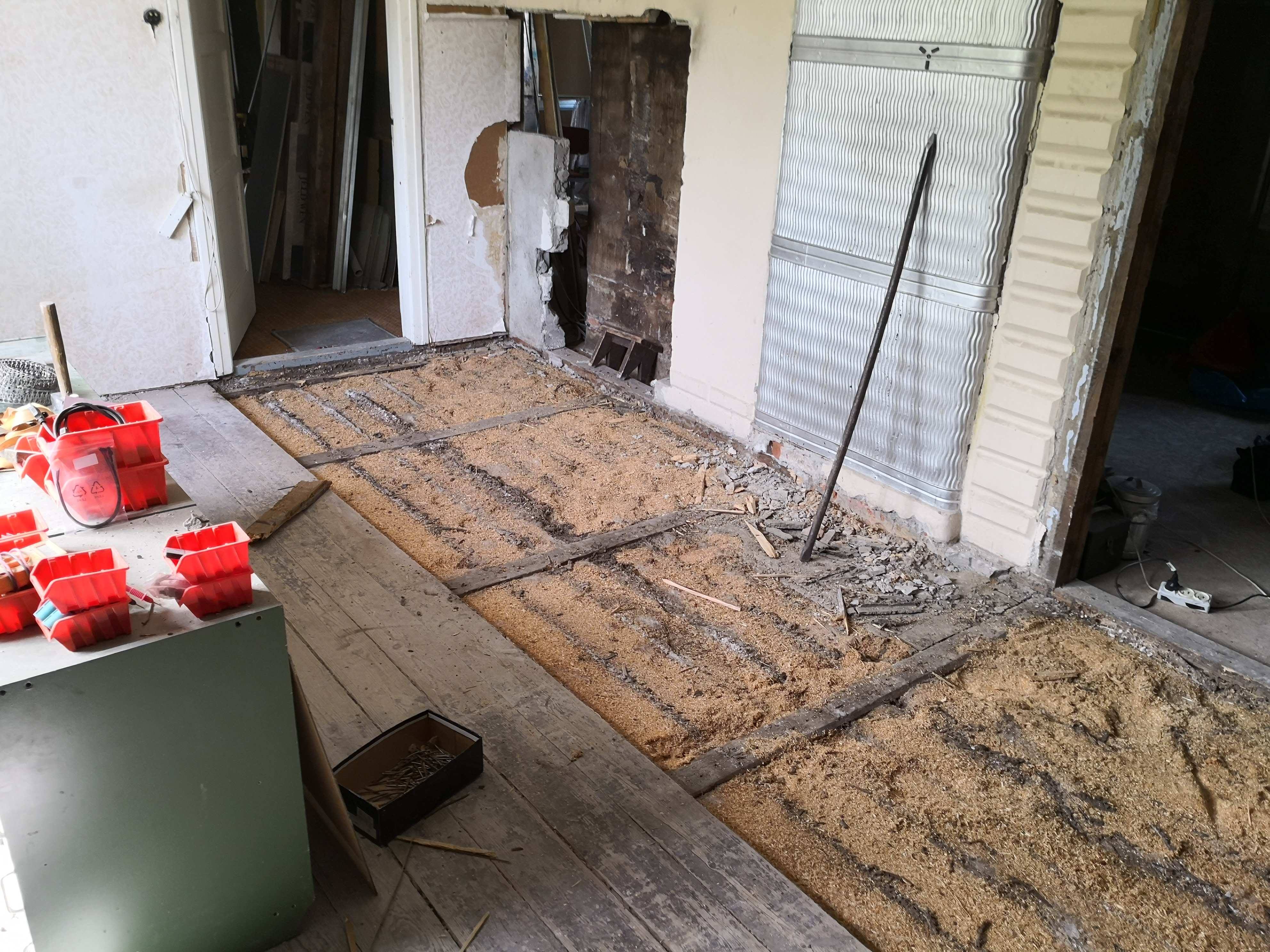 It is a shame these floor boards need to go. They are 4,5 thick and most of them have the length of the room, but also to many have woodworm holes. I guess I can reuse some of the boards that are not effected for something else as burning wood