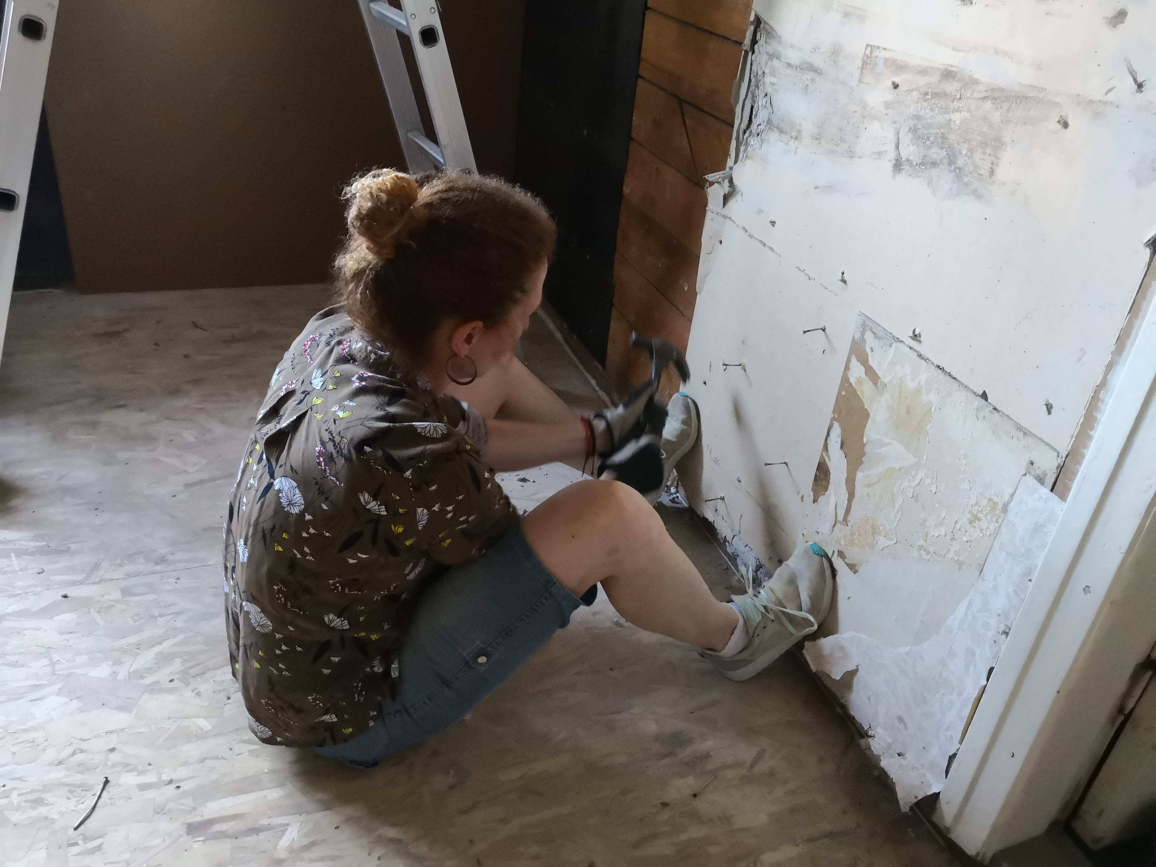 After that I finished taking of the hard board and plaster plate from the remaining wall and cleaning up after that.