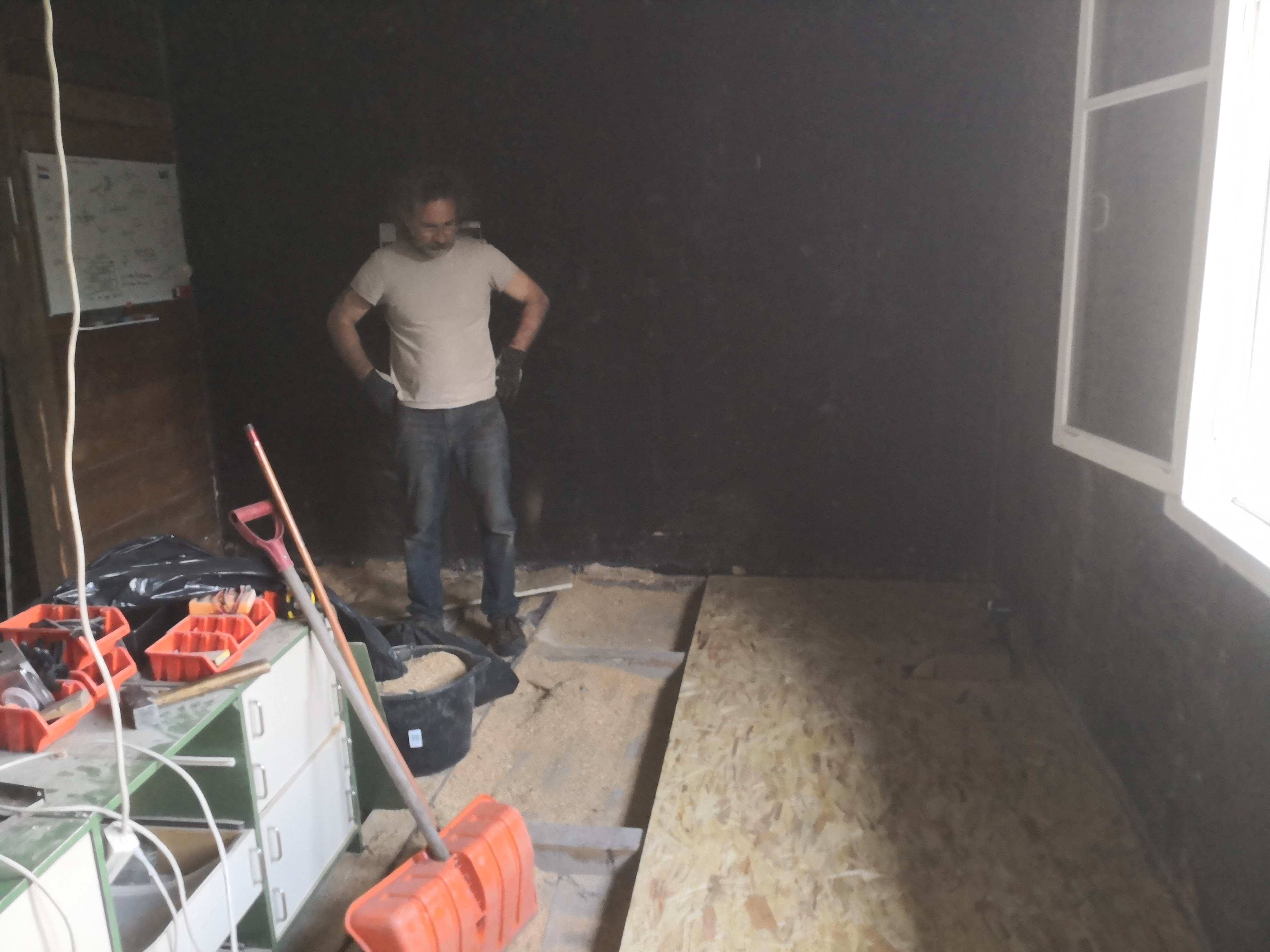 Another thing what now has higher priority it the replacement of the future studio floor, so the wall insulation can be placed before the pipes for the heater will be placed.