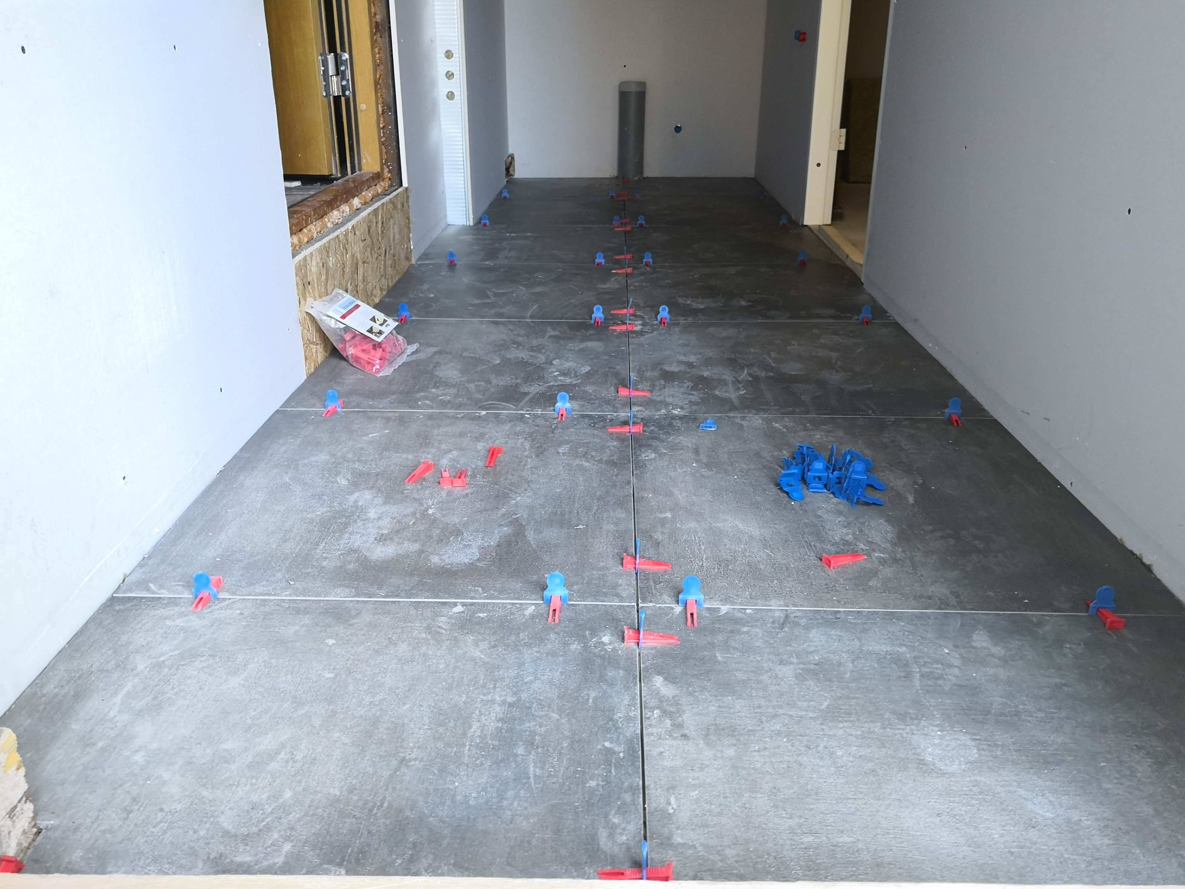 Before we could start putting the tiles in, I had to get a mixer tool, as I could not find it, so it might be still in the Netherlands. So a quick strip to ABC. There we found out there was another 25% discount weekend, so we decided to also bring switches and plugs for the floor heated part of the house. That should keep me out of trouble for a bit longer.