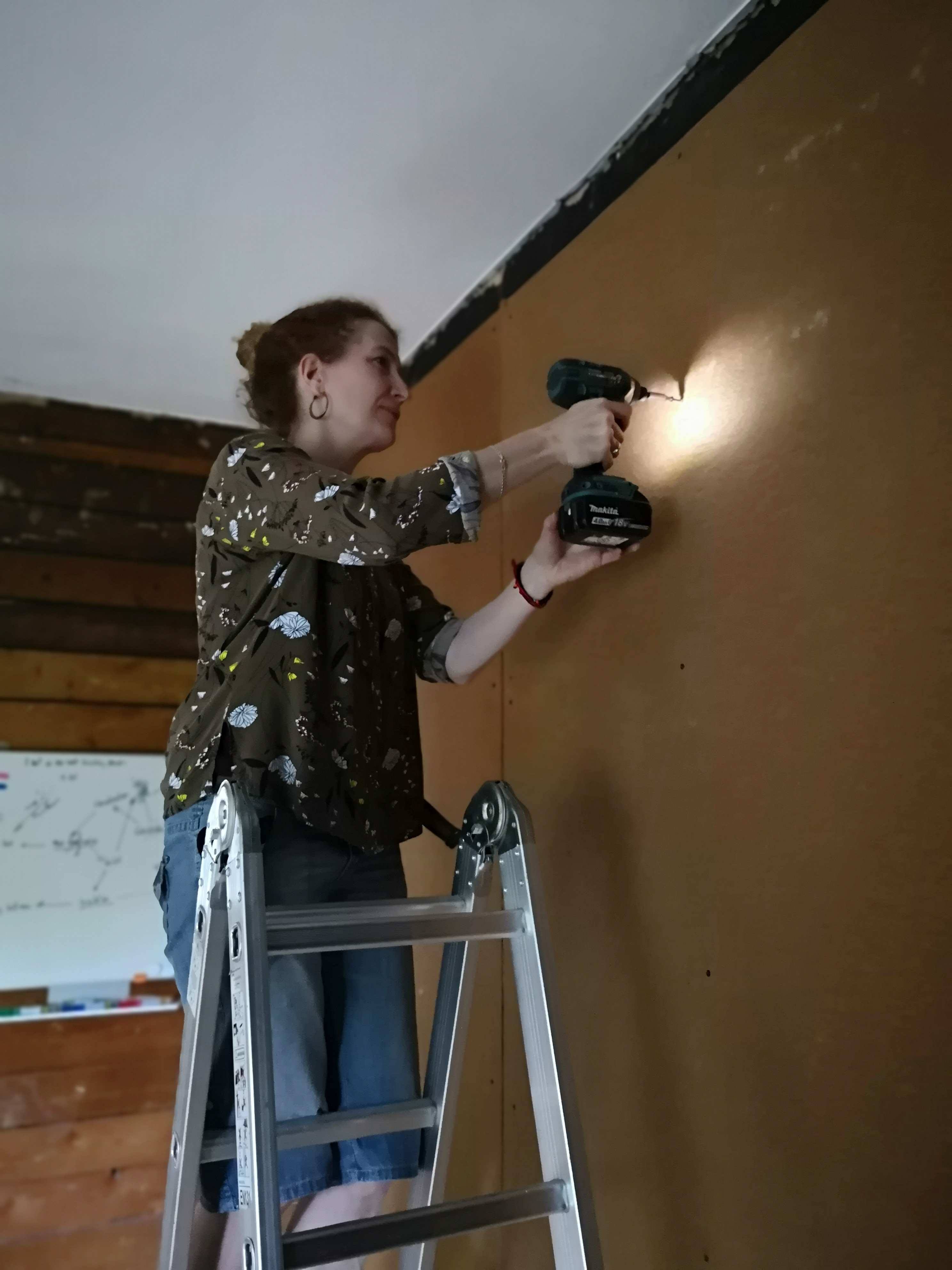 Back at Rõika we started the insulation of the walls. I showed Mo how to use the power screwdriver and she practiced faithfully with more and more success, while I took out a piece of wall (covering) that would be in the way. Working together on this was very nice and we made a lot of progress, almost finishing the entire wall.