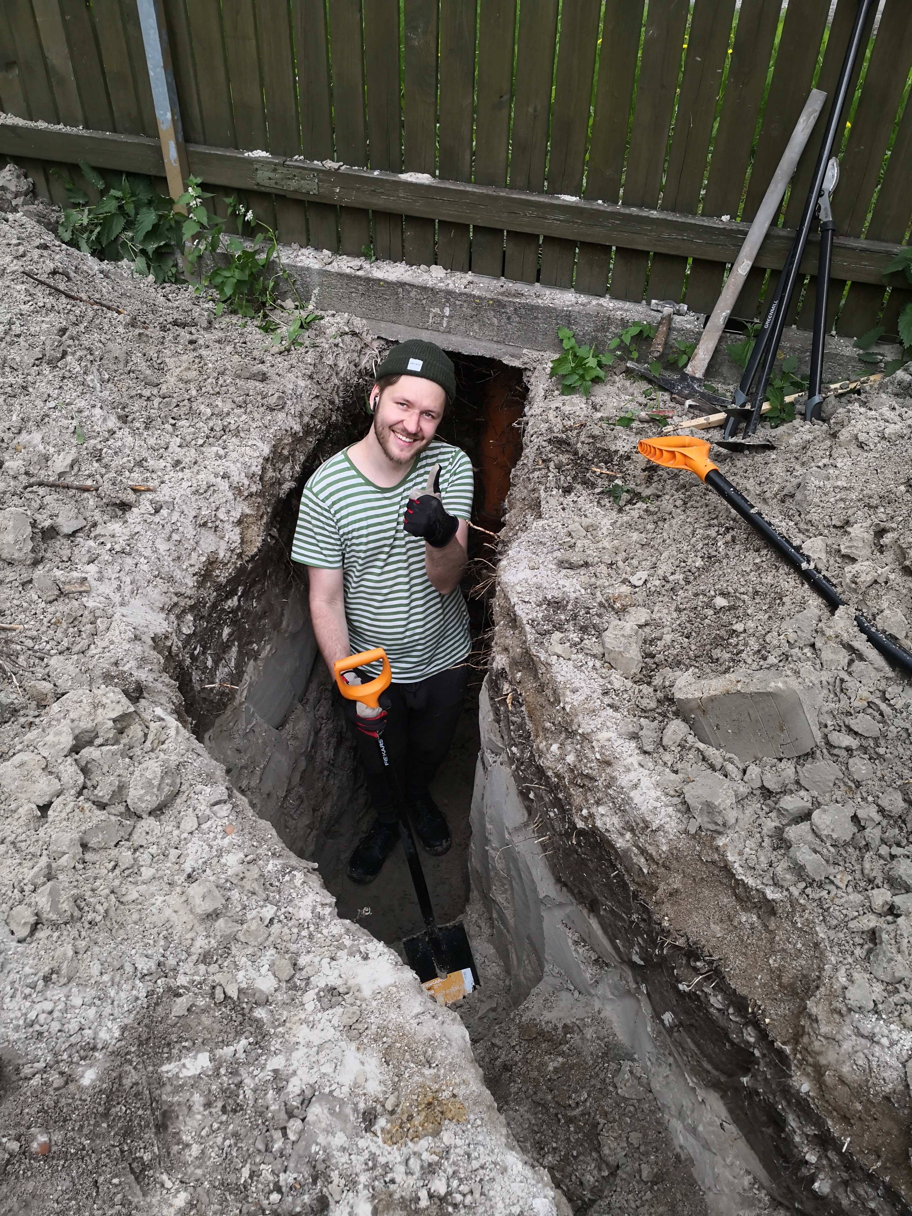 To start with the end sprint we organized another BYOT like party, as the weather looked promising we made it a Build-BQ party. Kaspar came to dig again and he did an awesome job digging a trance of 1m60 deep. Marc took care of the top floor in the old living room.