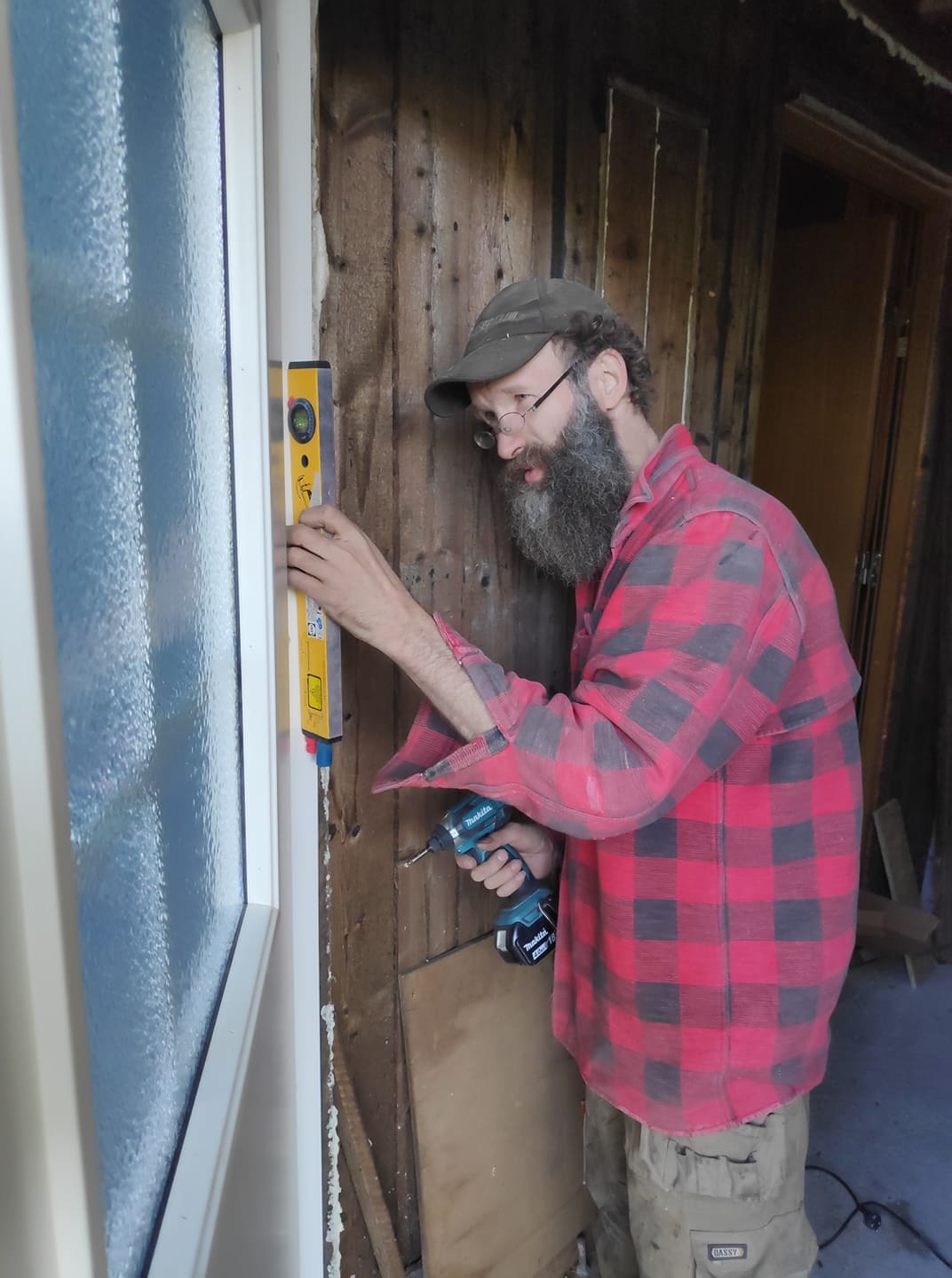 Matthijs started on dismantling the old front door, while I got some missing parts for the water piping and finished the cold water part. Then I joined him in placing the new front door. Nice work if you are patient. But the result looks great.