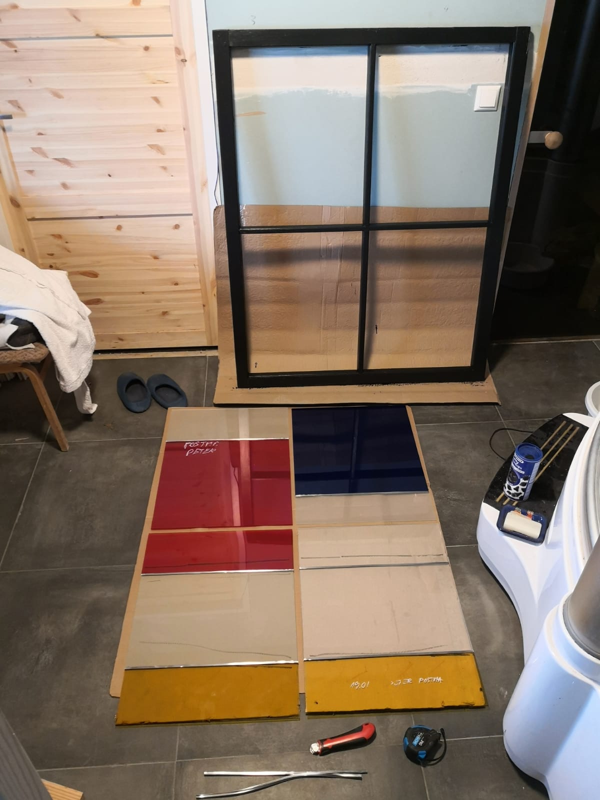 While waiting for the delivery, I sanded and painted the windows frame. Since it is Mondriaan design we picked black. It looks very classy.