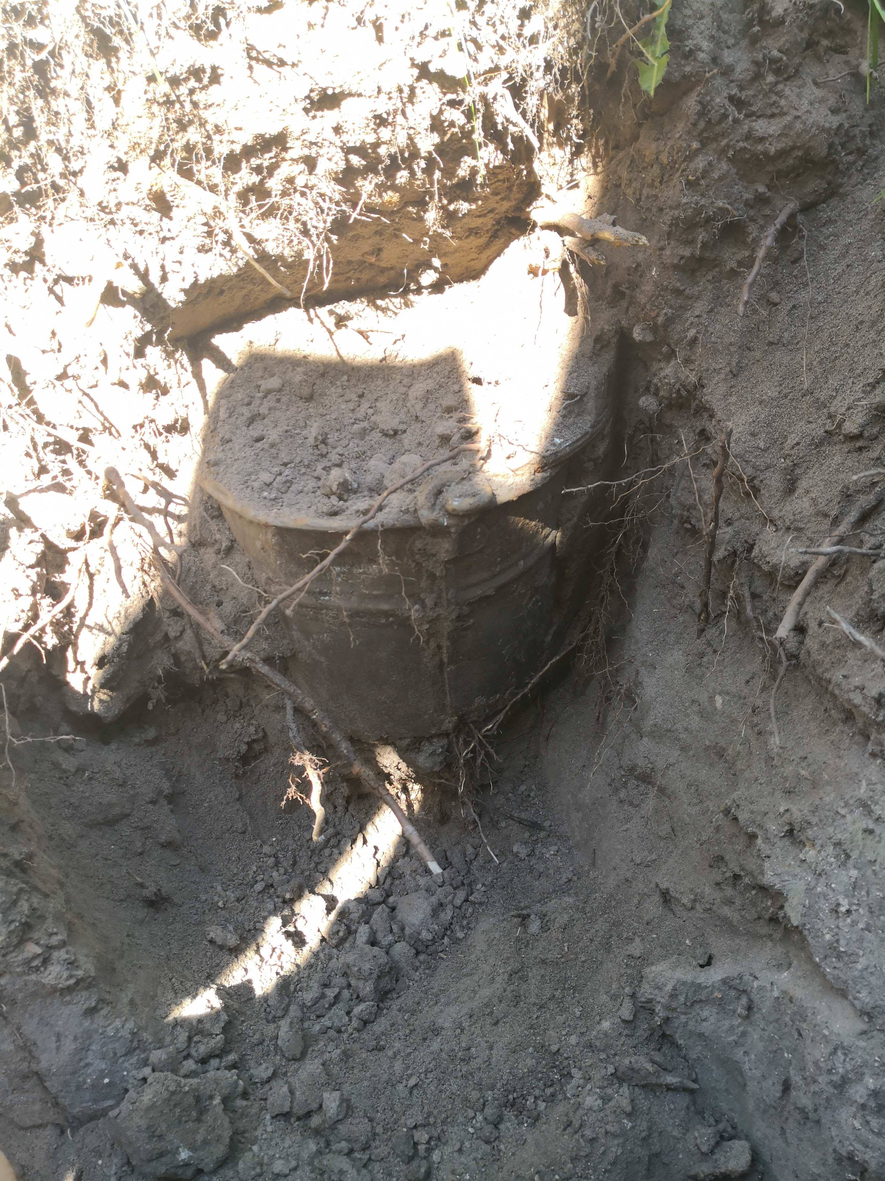 Back home again, I started digging, after a while I found an old gold bucket, unfortunately it was empty. When I got deep enough, I tried to drill under the pavement, but I had just missed the connection. Tomorrow another try!