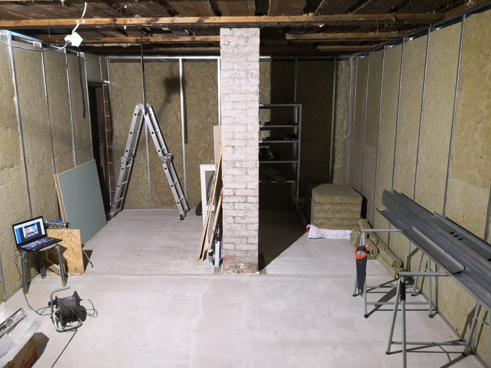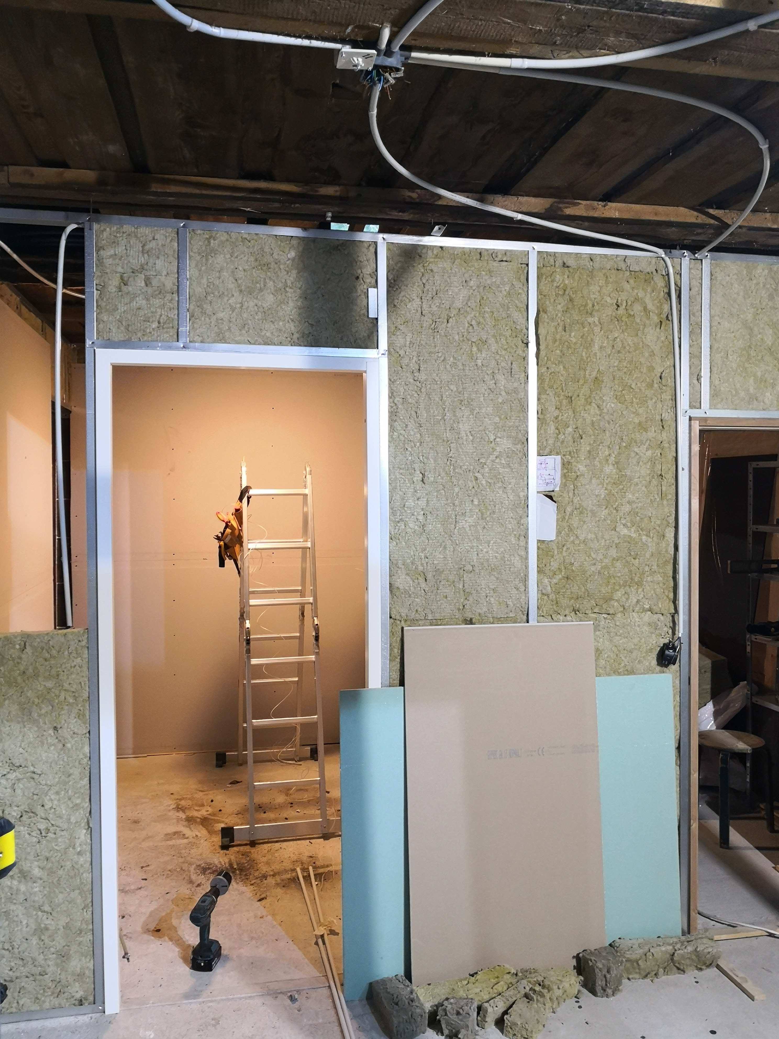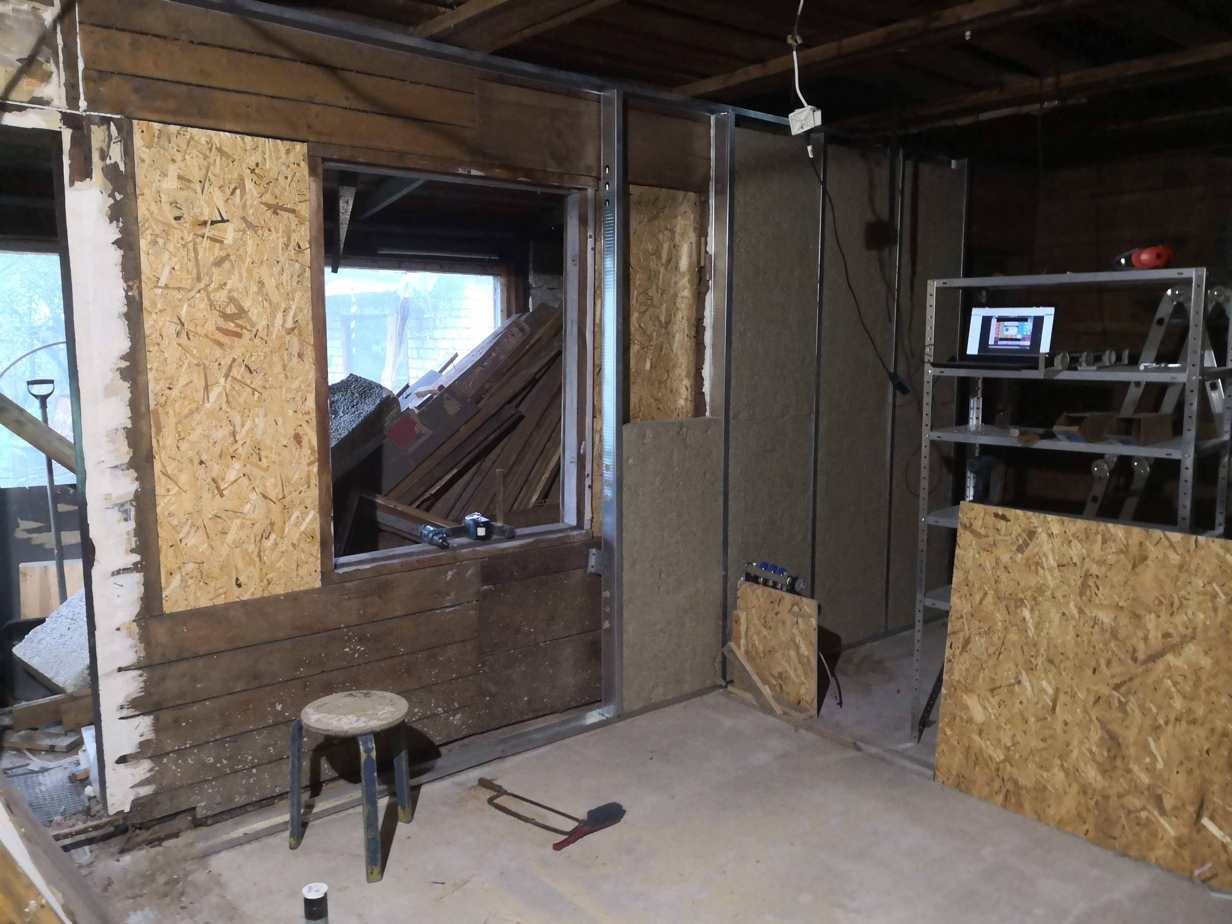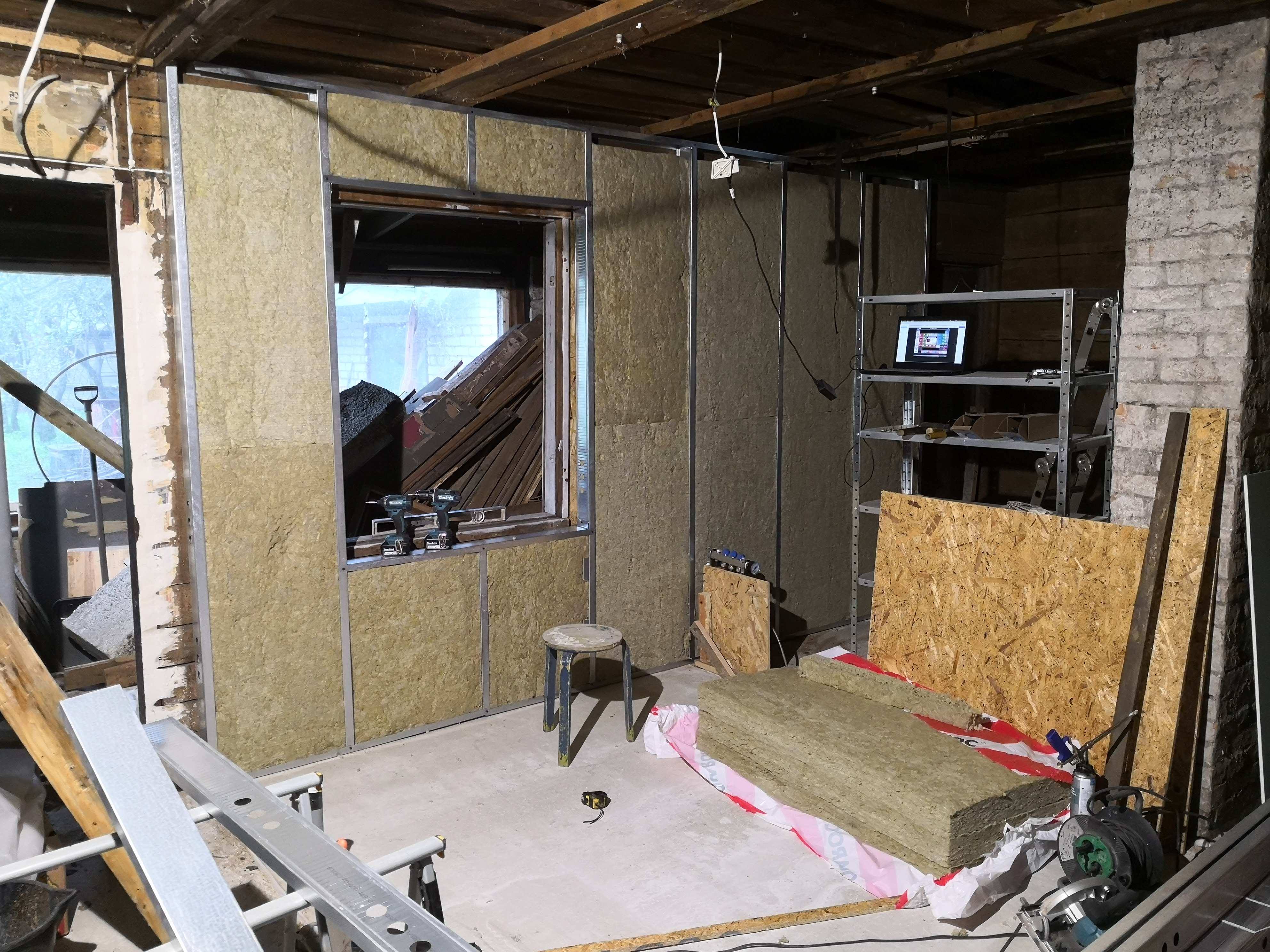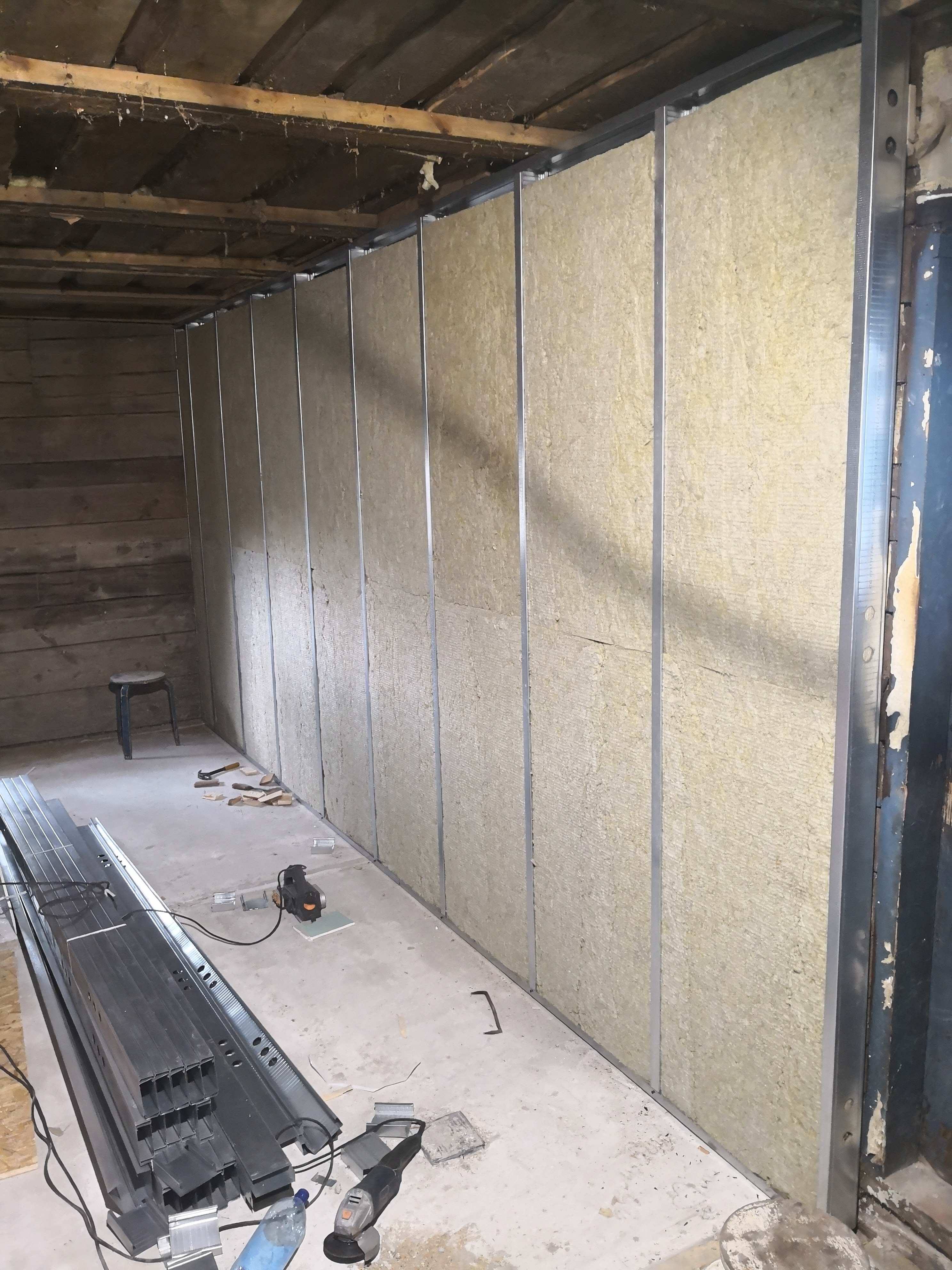 Today I planned to insulate the last wall and clean up so I can start putting in dividing walls on Wednesday. The west wall went smooth, but when I was filling the uneven gabs between the wall and the insulation wall I did notice again there was a very big gab near the old doorpost.