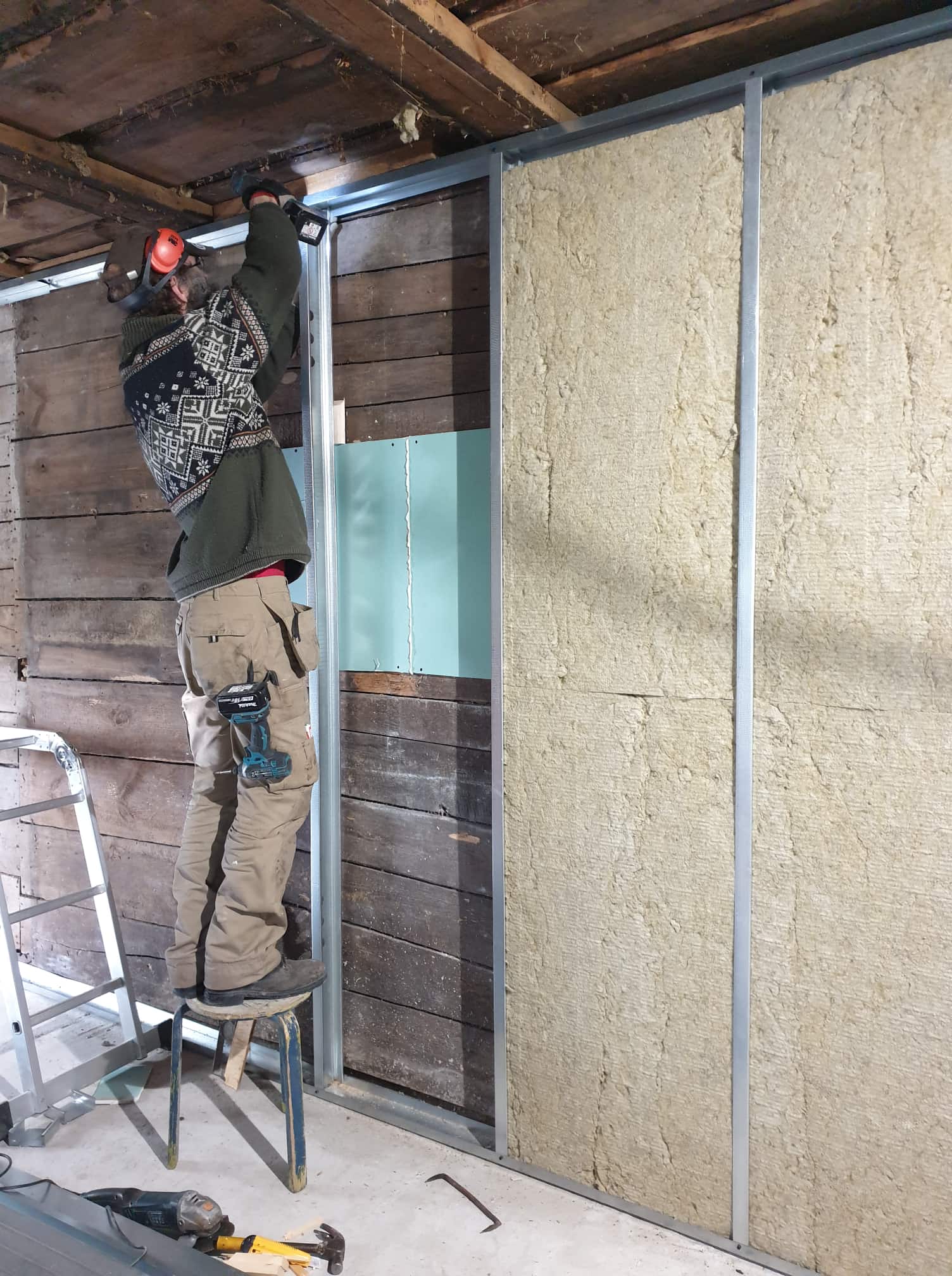 It almost sounds like an American slogan, but in this case it is the weekend of building the dividing wall of what will be the hallway, toilet, bathroom, sauna and washing/boiler room.