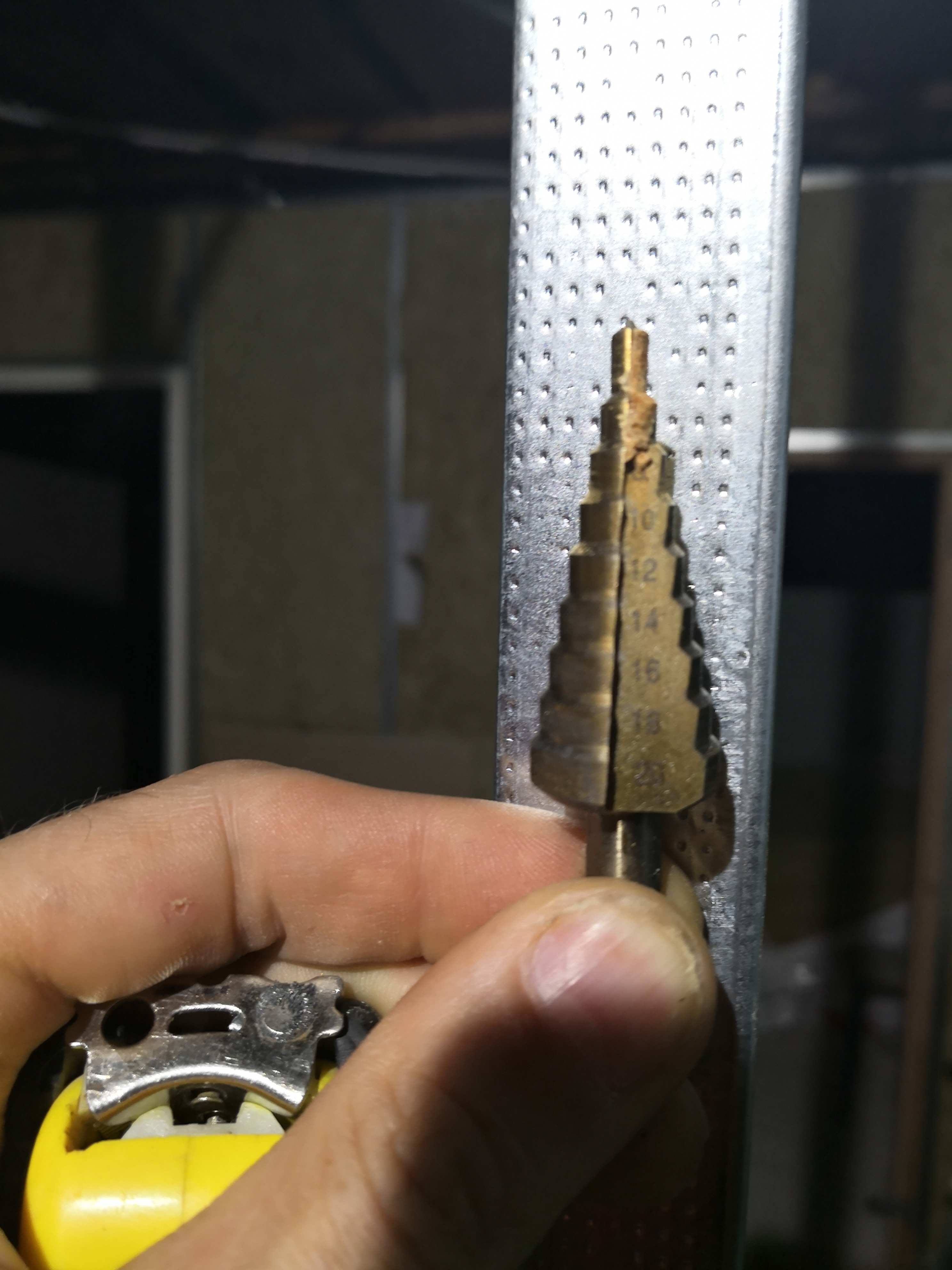 Today, the plan was to start extending the electricity system with switches, plugs and lights, but soon Martijn and I ran into the problem that the electricity pipes needed to go through a hole in the metal studs and the biggest metal drill I had was only 10 mm, way to small for the pipes, so we went on what turned out to be a quest for a fitting drill. (And while where at it we could check out some prices for some water piping material and tools and the actual switches.)