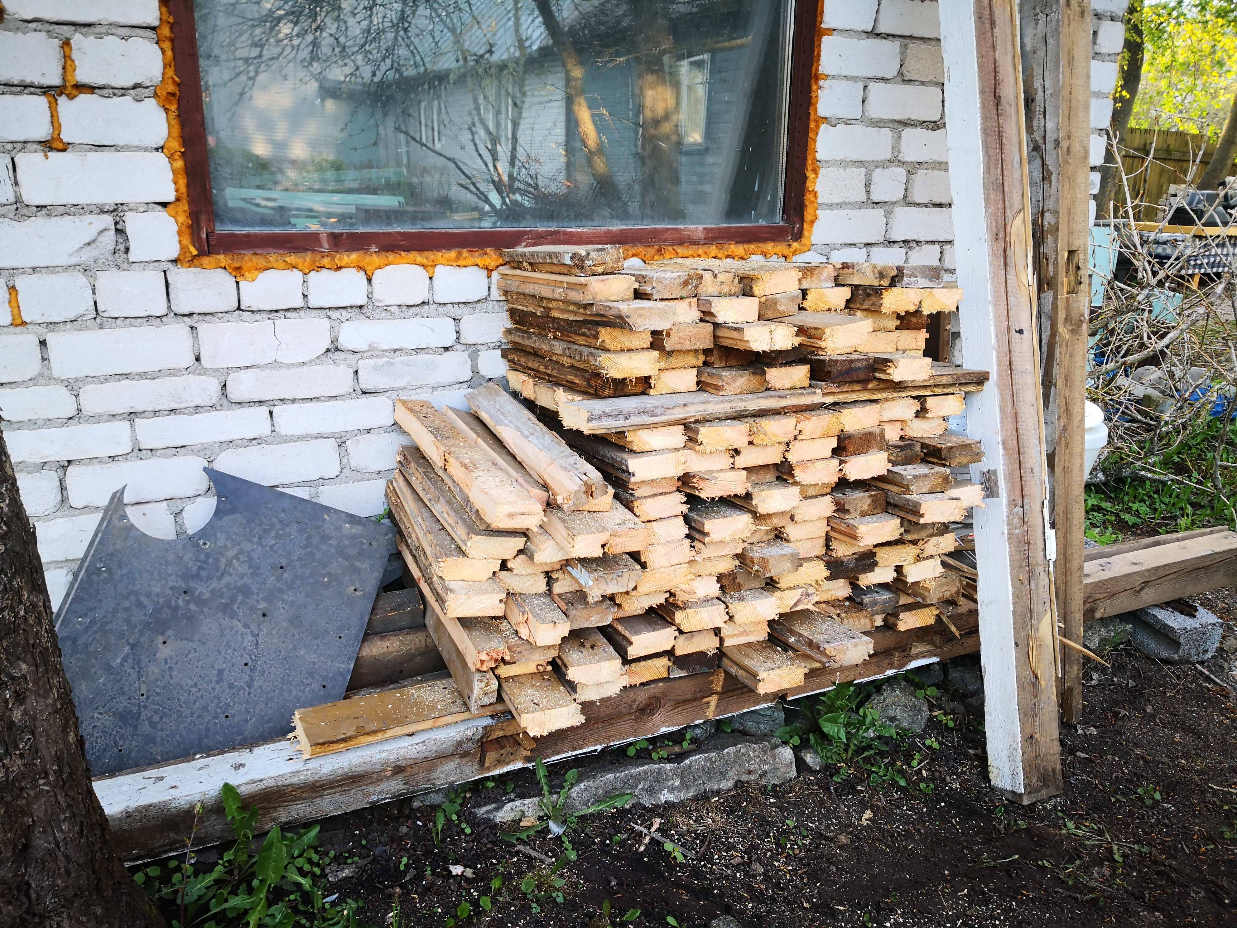 I also cleaned out the front garden from the wooded floor we took out last week. I sawed it in pieces and piled it up in front of the garage. Firewood with woodworm.