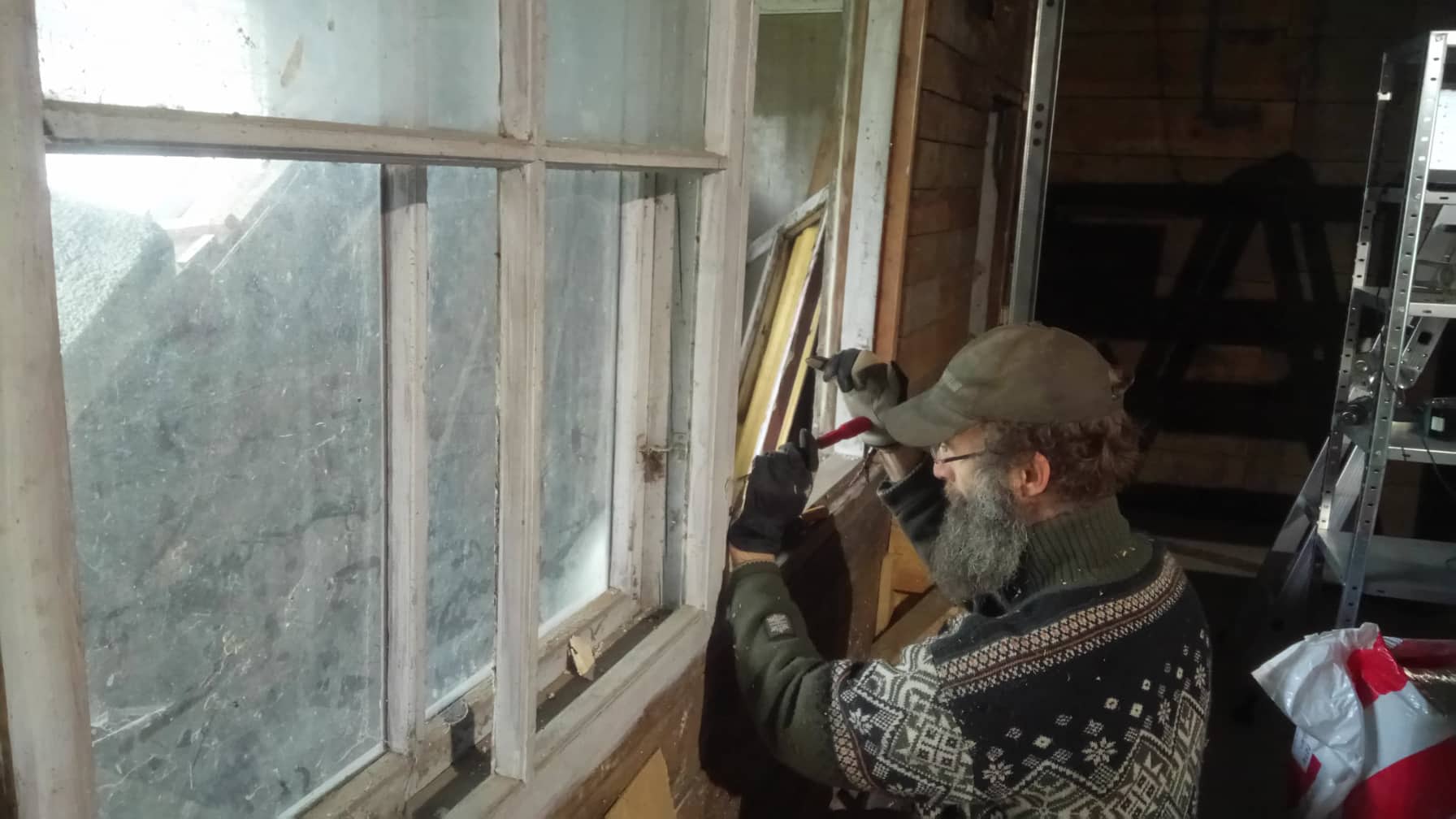 After that Mo helped to put up the ceiling and floor rail and then I could start on removing the windows and moving the best one.