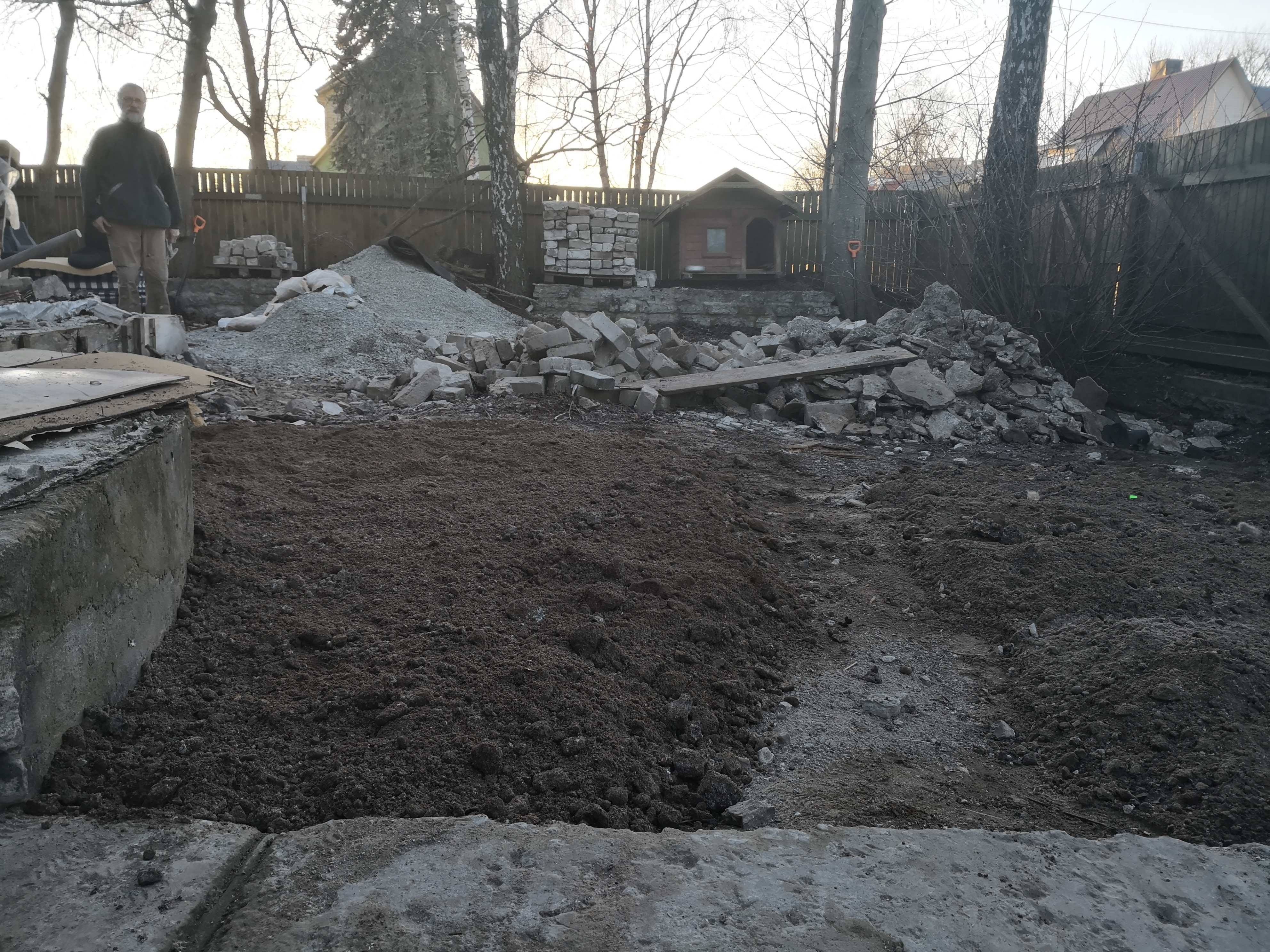 Well, we got a lot of digging, as most of the ground was either a light stone, which only came loose with the pick, or some ground mixed with some concrete, where we would need the pick again.