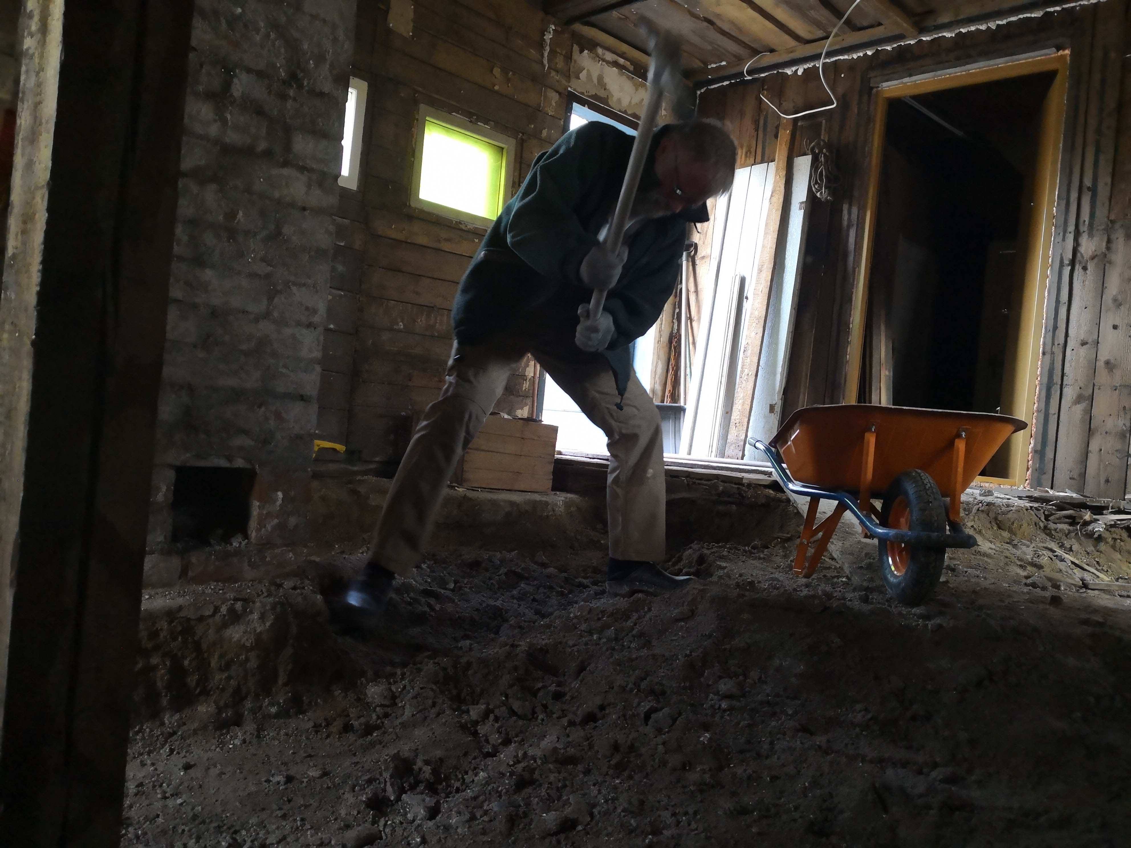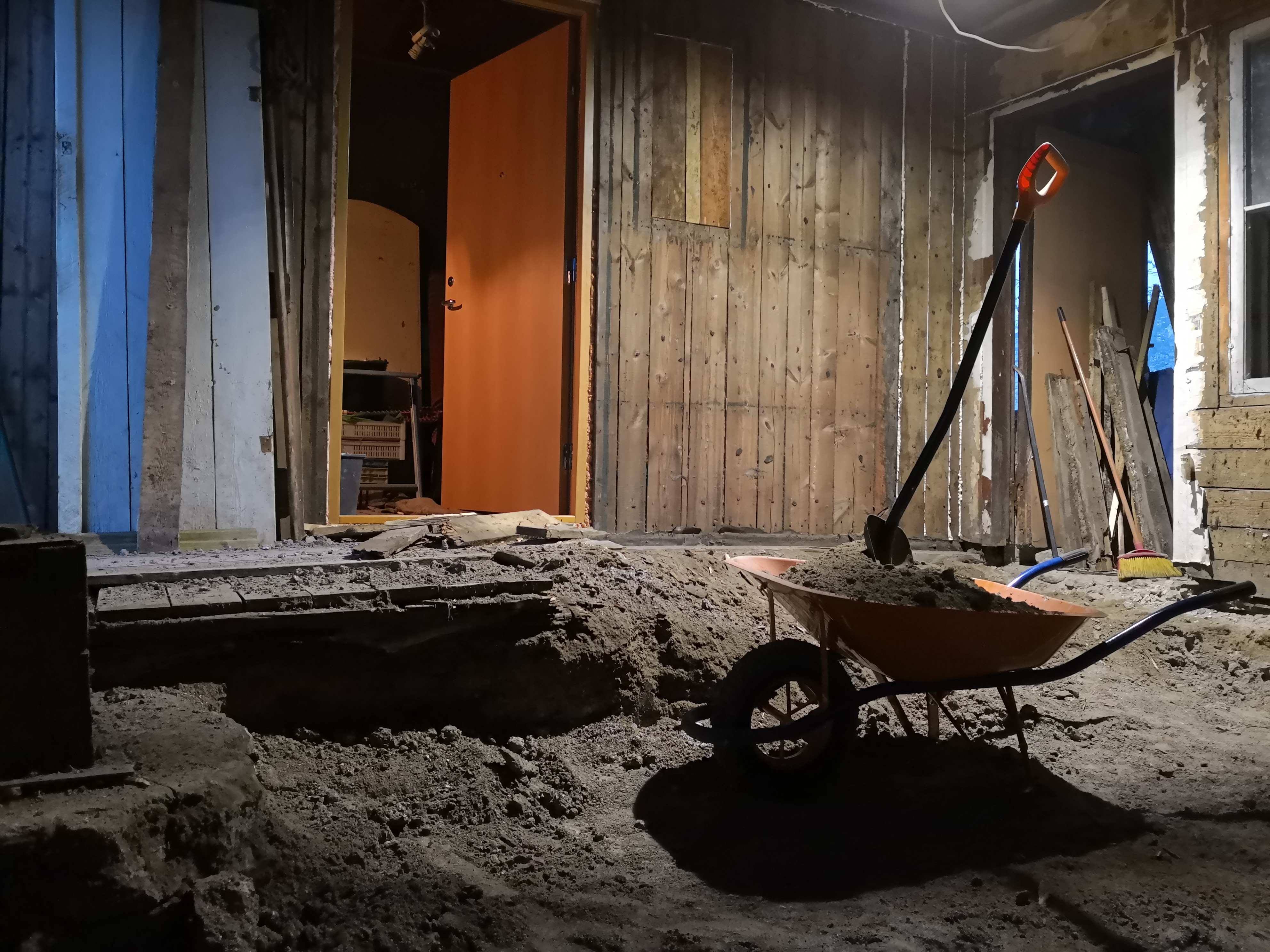 So, the plan was to dig out an extra layer of sand from under the floor, so we could place the styrofoam insulation plates as a base for the concrete floor.
