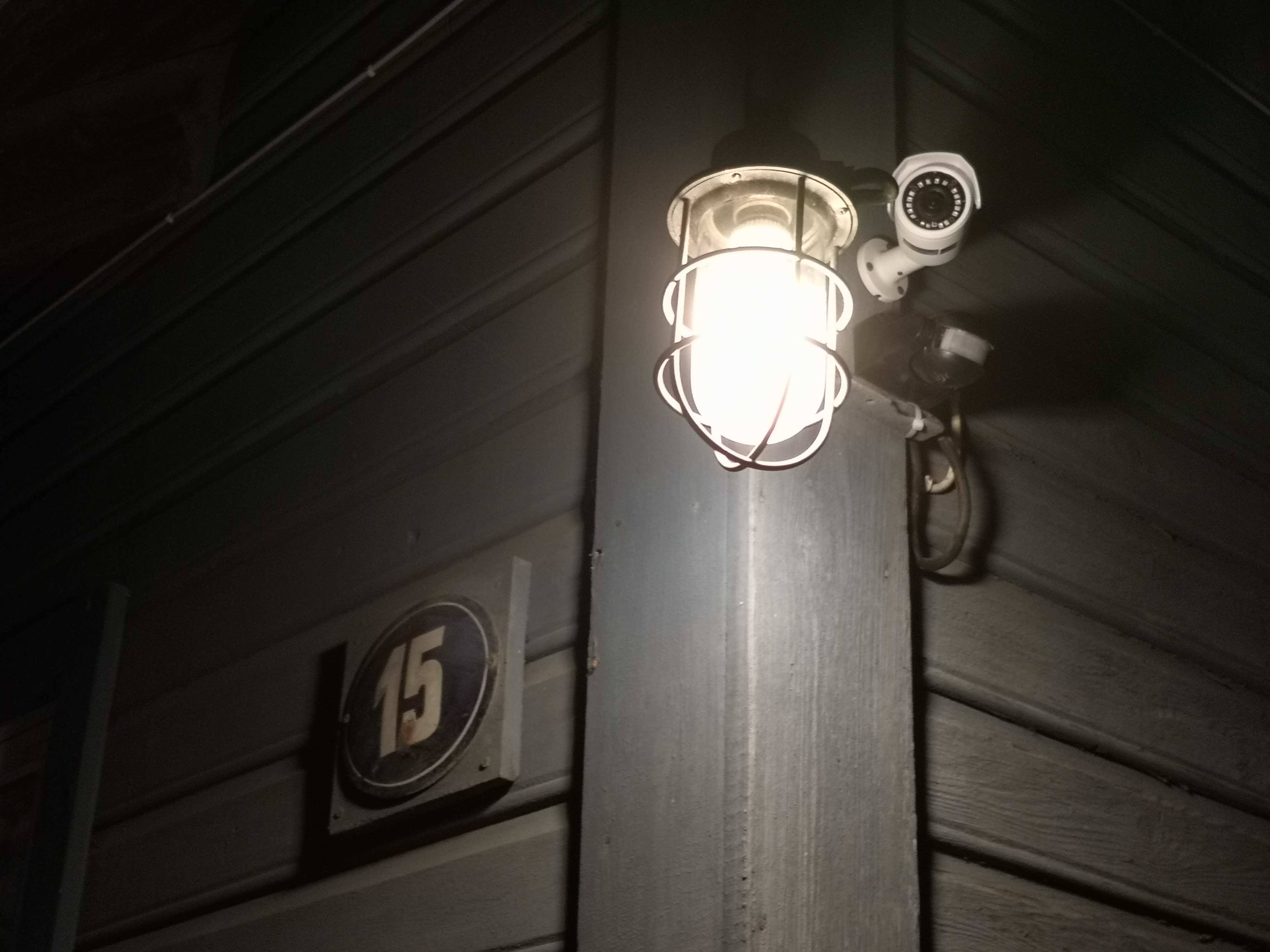 Another day of finishing off. Plus I wanted to connect the outdoor lamp and install a motion sensor to turn it on. And since the security camera should go at about the same place. I would install that as well.