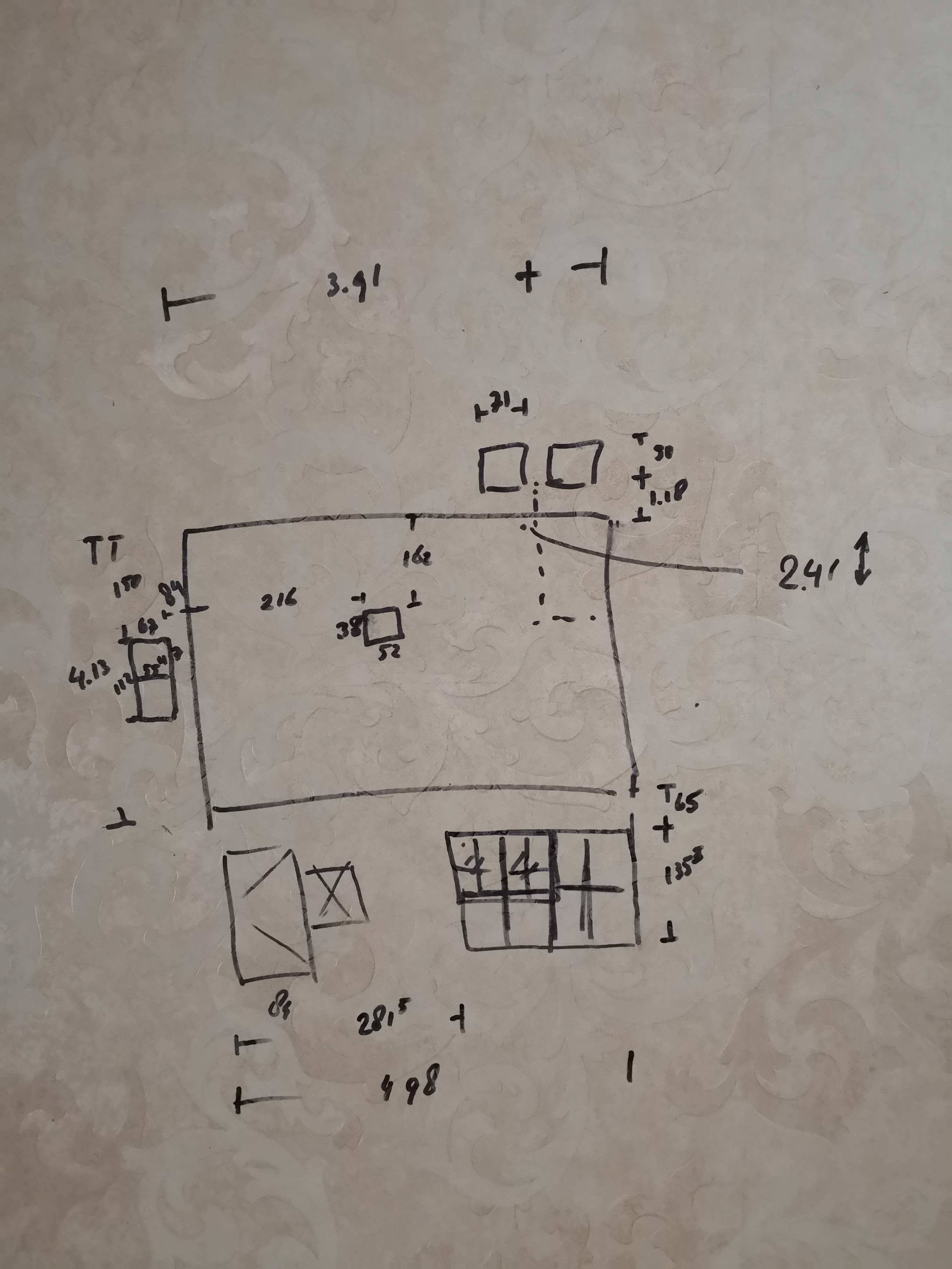On Sunday my dad and I went to the house to heat it up a bit and take measurements. Especially for the planning of the bathroom/sauna part and the kitchen exact measurements are important. Besides we took down the last beams of the wall near the heater.