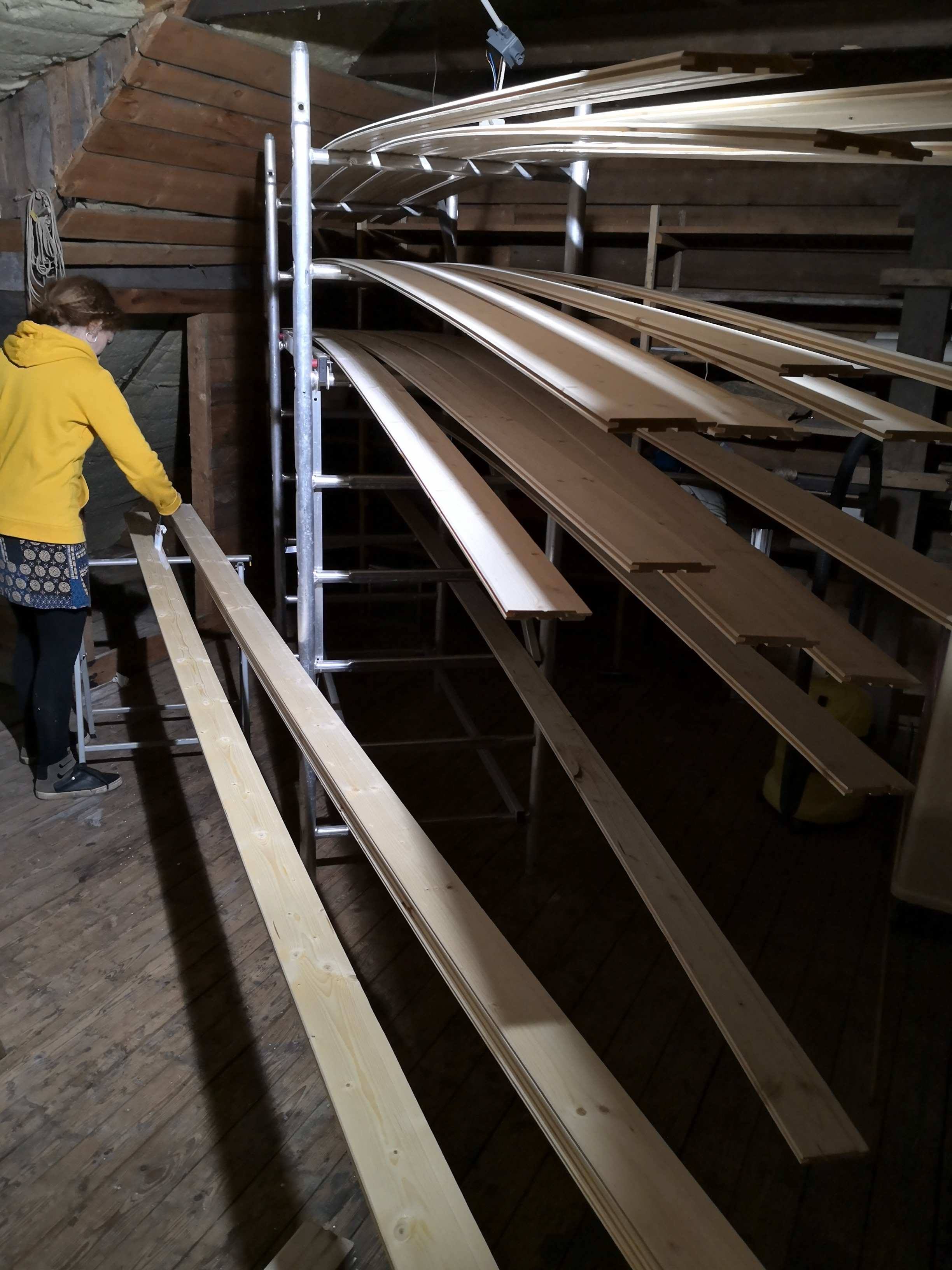 With the knowledge of how many wires I need to run to address the LED strips on the beams, I prepared the wiring. When that was done I could put in the rest of the ceiling. With the shorter pieces It was easier to work with, yet still a lot of work, but with a great result!