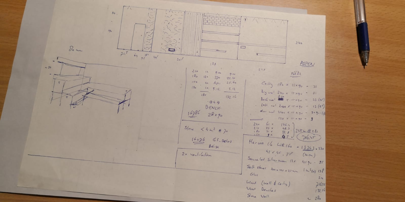 So I measured the sauna and and started calculating the materials I need. It became a pretty long list, which I send to the sauna specialist in town. For some reason it does not seem like the ware very eager to sell a sauna as after the first day their website gave an error when the payment failed and since they really have trouble getting back to me.